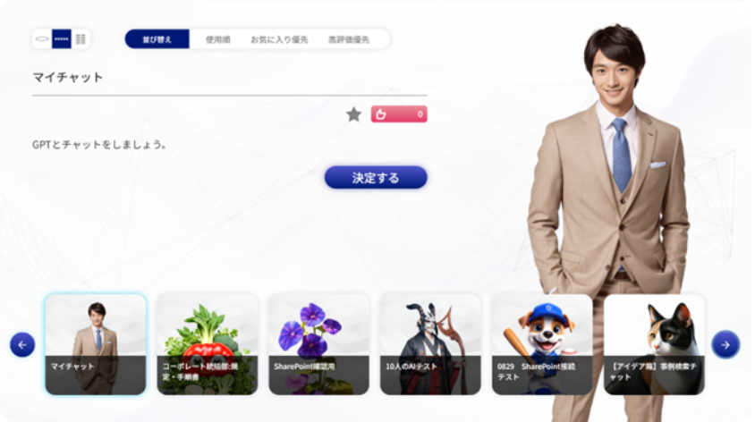 また最近はRAG機能(文書検索、EXCEL分析)の活用を本格化させました。今後は既存資料やEXCELで整理されたデータを基にした業務の効率化に期待しています。